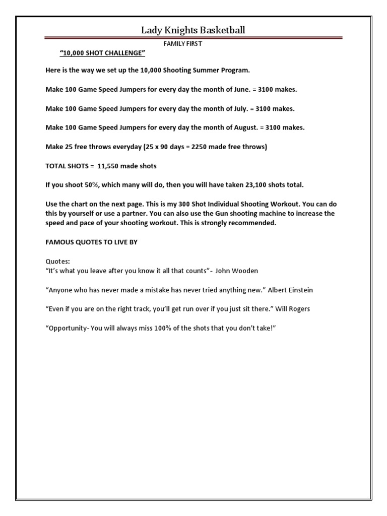 Summer 10 000 Shot Challenge Hopkins Girls Basketball Association