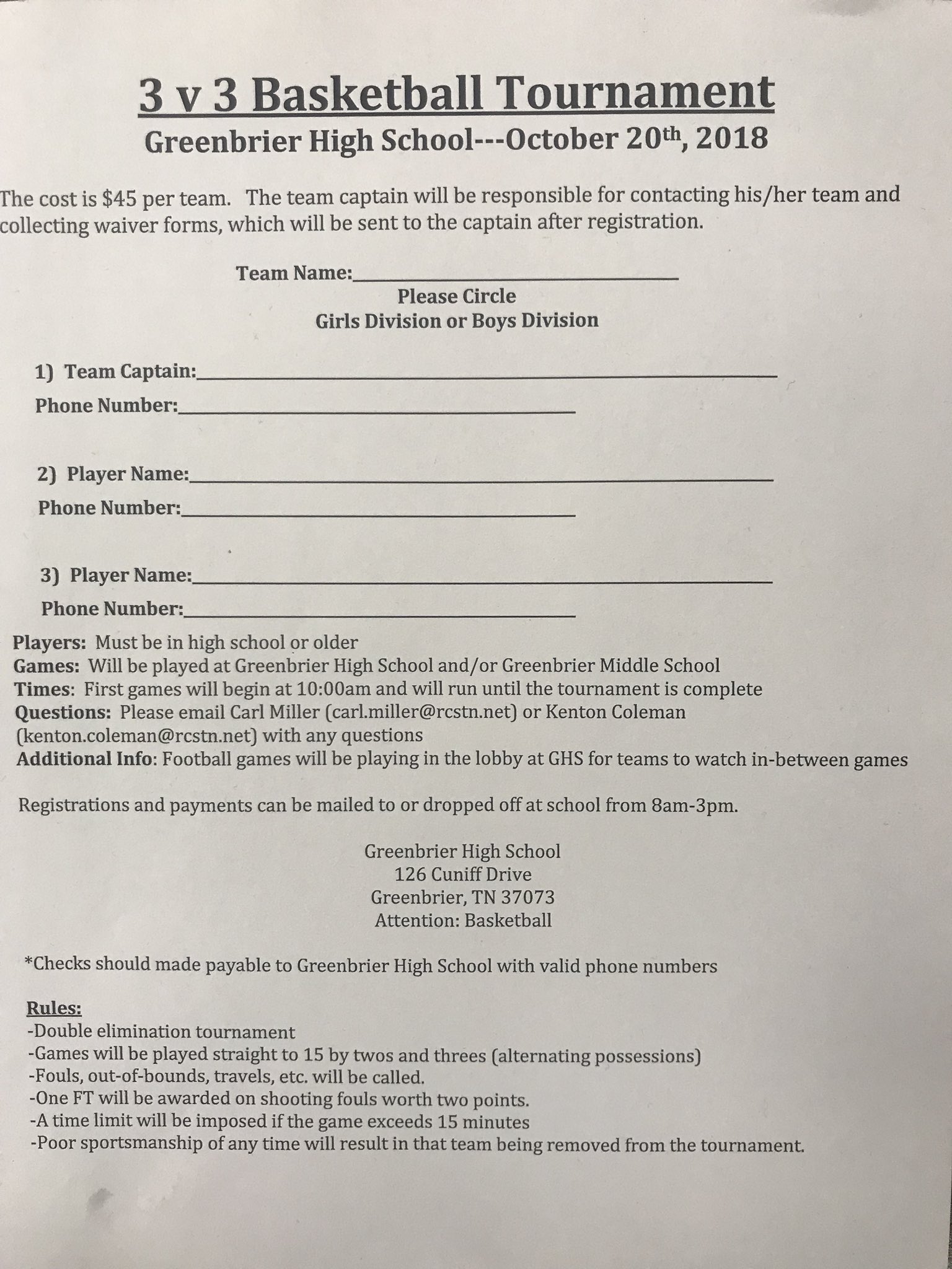 3 On 3 Vacation Week Basketball Tournament Grades 6 12