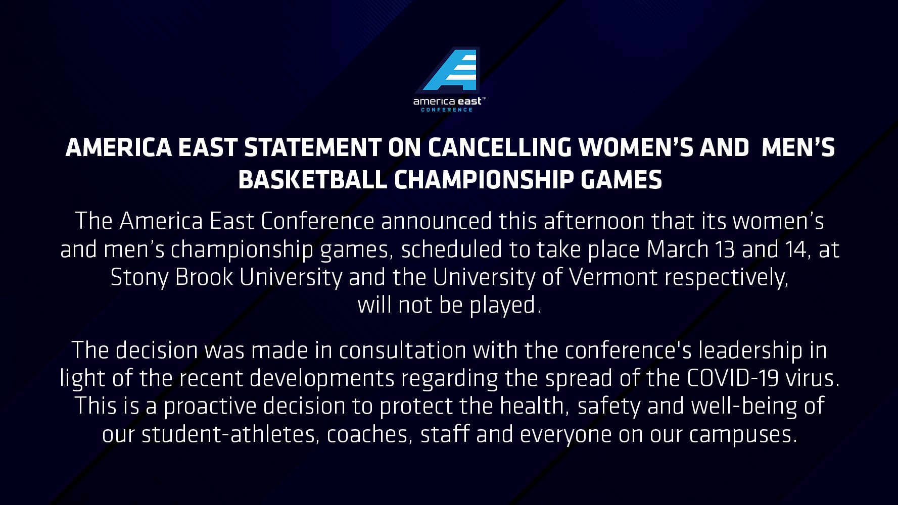 America East Basketball Tournament 2020 Championships Canceled