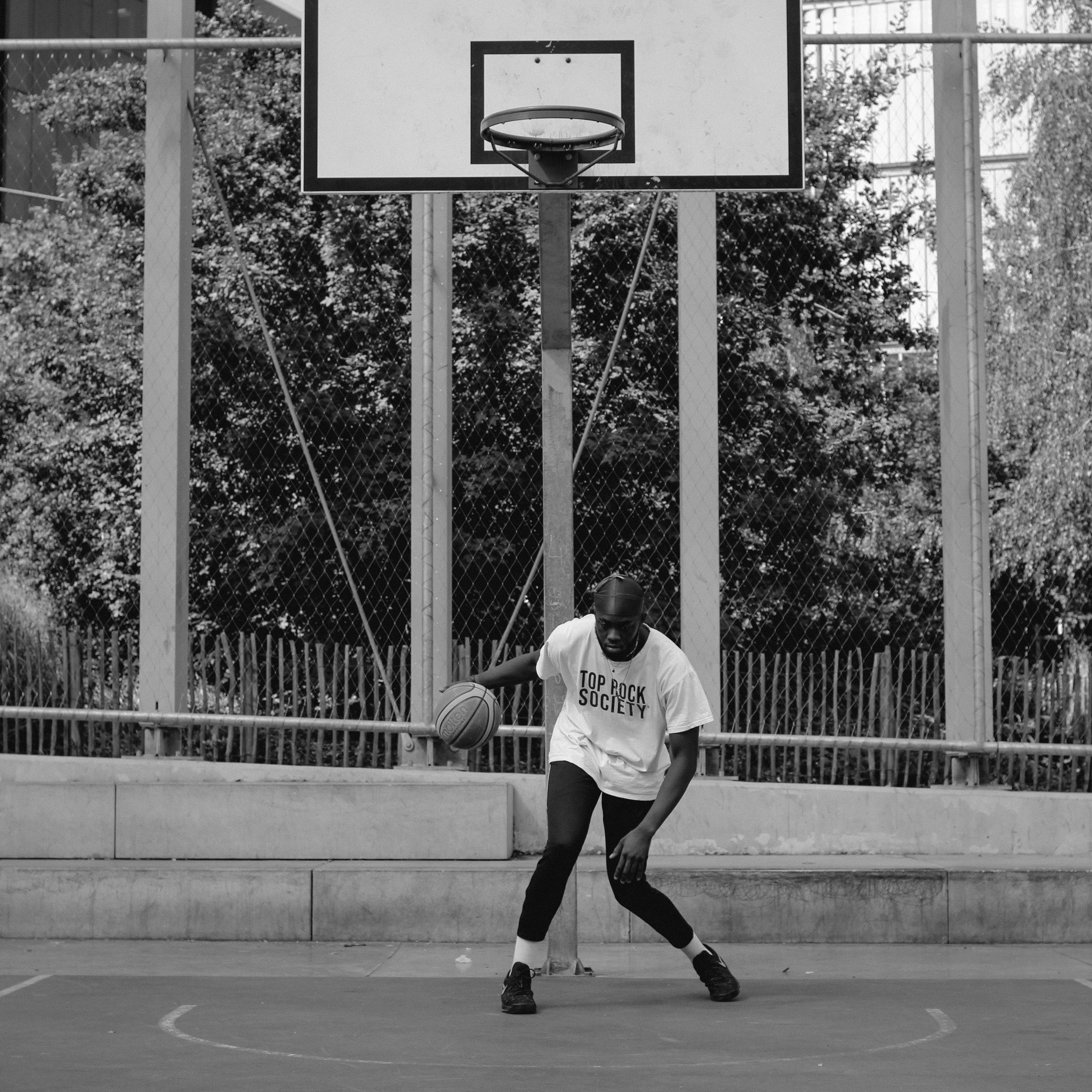Old Unused Basketball Court Black And White