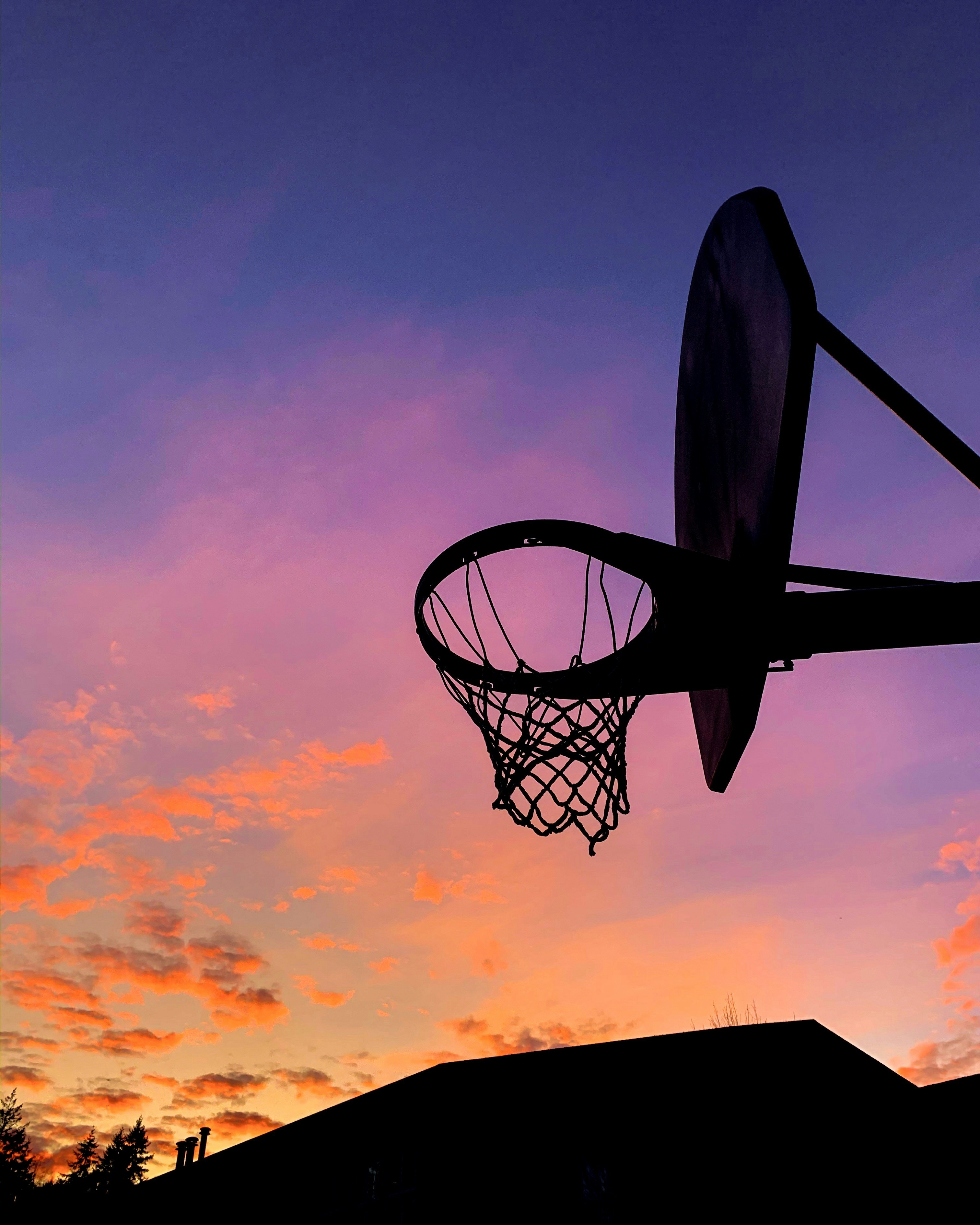 Silhouette Of Basketball Hoop During Golden Hour Photo Free Hoop