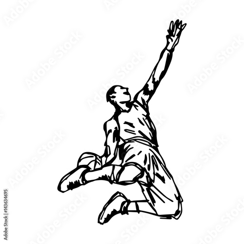 Basketball Player Jumping Dunking In Line Drawing Vector