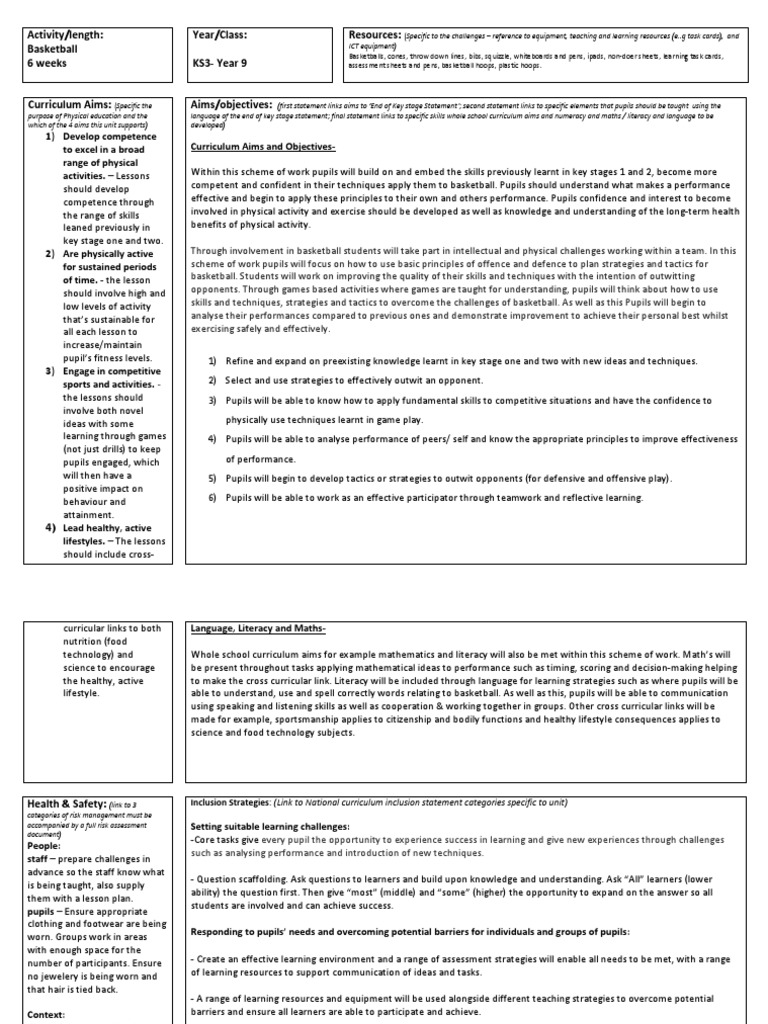 Basketball Pre Assessment Quiz