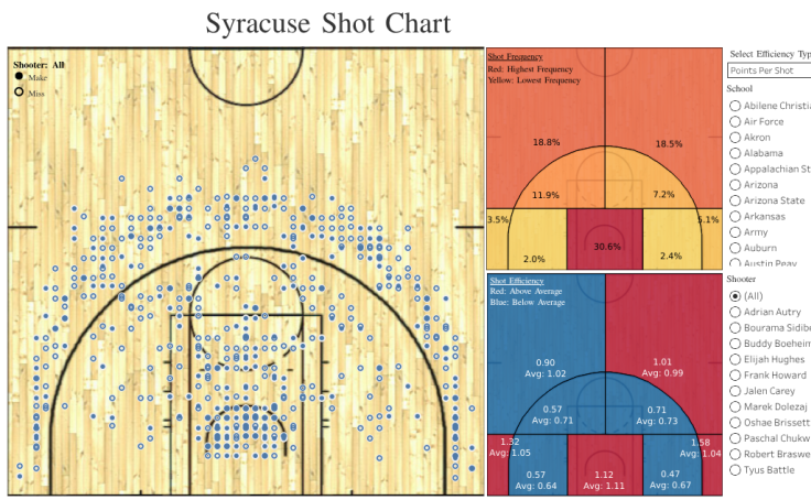 College basketball shot chart tool the above link is a tableau dashboard containing shot charts for ncaa teams and players. Ballr lets you select a player and season then creates a customizable chart that shows shot patterns across the court. Ncaa basketball shot chart tool it looks like your browser doesnt support iframes. Shotmadeflag if shot was made 1 or missed 0 x and y values represent shot location on the court and period what quarter it was.