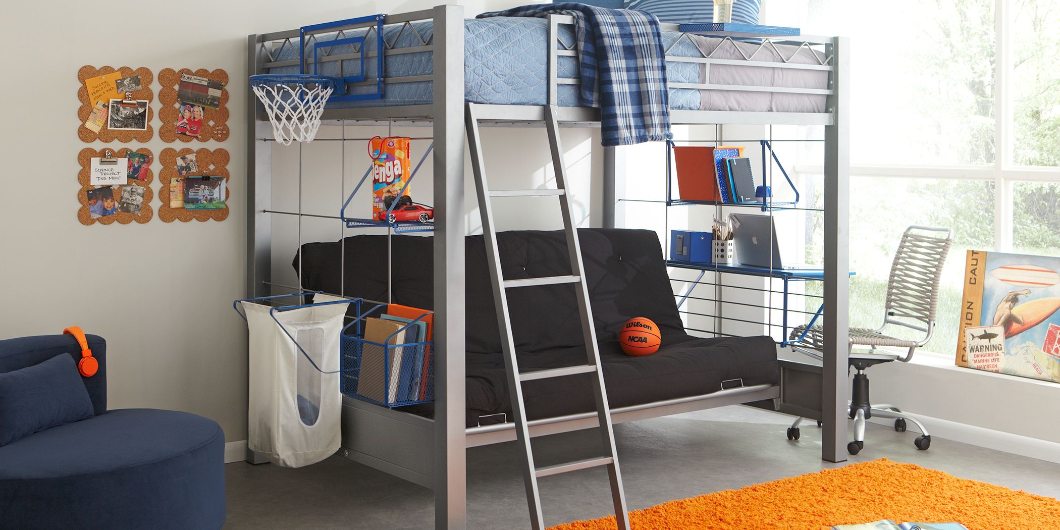 For the athlete or sports lover in your home the hoops metal basketball bed combines fun and function gives this study loft the rugged construction to survive in any youth environment. Versahoop xl mini basketball hoop hook on clamp on for indooroutdoor trampoline pontoon bedroom camping tailgating beach bunkbed office. What aspiring nba player hasnt dreamed of having their very own court to play in. Made from mdf metal and pvc.