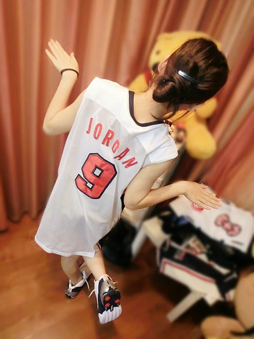 A Young Girl Wearing Oversized Basketball Jersey Shorts And Shoes
