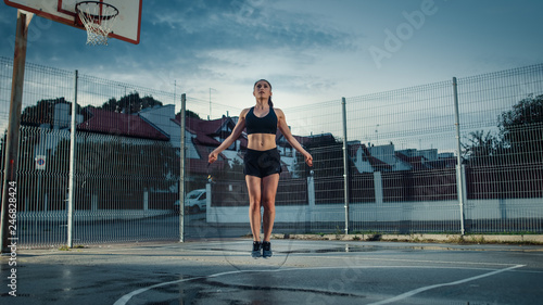 Beautiful Energetic Fitness Girl Skippingjumping Rope Stock Photo