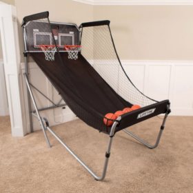 Test your skills on a heavy duty double shot arcade basketball system from lifetime products. Constructed of heavy duty 18 gauge powder coated steel the lifetime double shot is durable rust resistant and will not crack chip or peel. Most injuries are caused by misuse andor not following instructions. The nylon ramp has adjustable straps and buckles and unlike many systems it will not fray or sag over time.