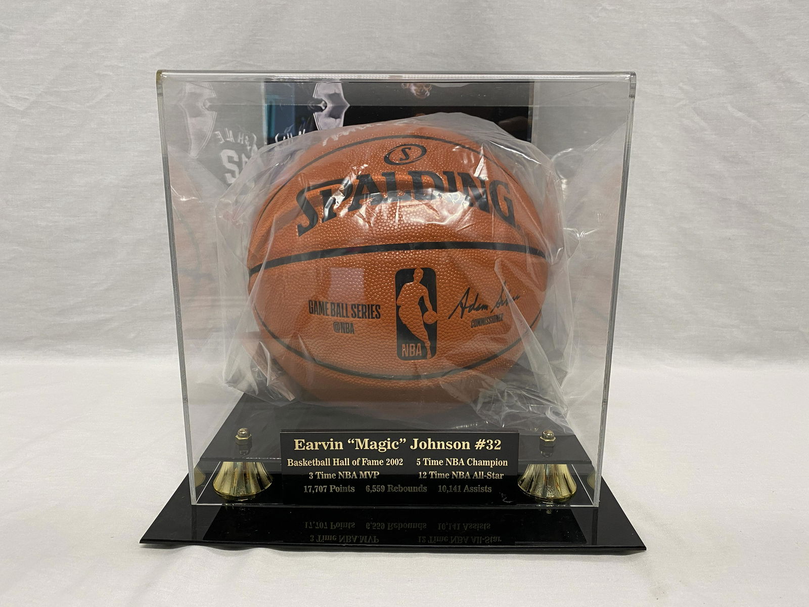 Larry Bird Magic Johnson Autographed Basketball Mounted