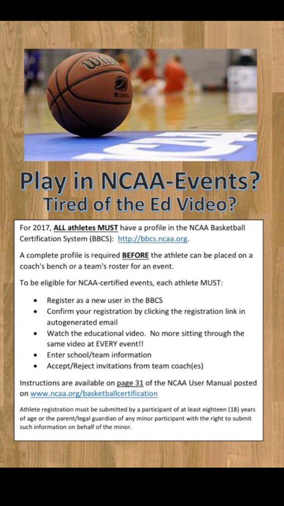 The basketball certification process provides activity operators who agree to operate their activities in accordance with the applicable legislation and certification requirements the opportunity to receive league certification to allow the participation of division i student athletes andor event certification to allow ncaa division i coaches to attend and observe prospective student athletes who are participating in the activity. Eventleague operator submits their application to request ncaa certification online coaches register their team rosters and opt in to all of the events they are attending. You will need to have an active usab license number in order to register with the ncaa basketball certification system bbcs.