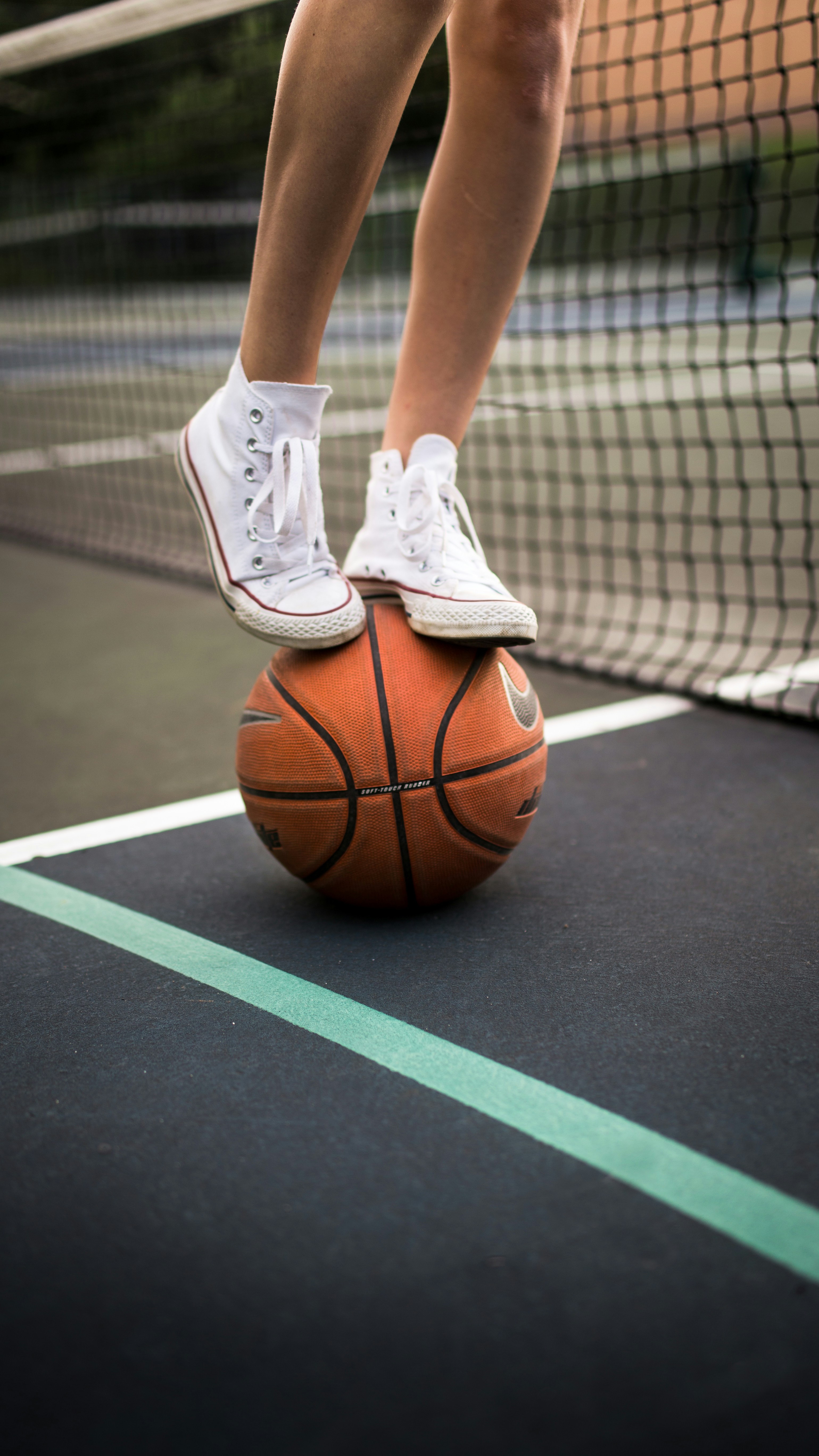 Person In White Nike Athletic Shoes Standing On Basketball Court
