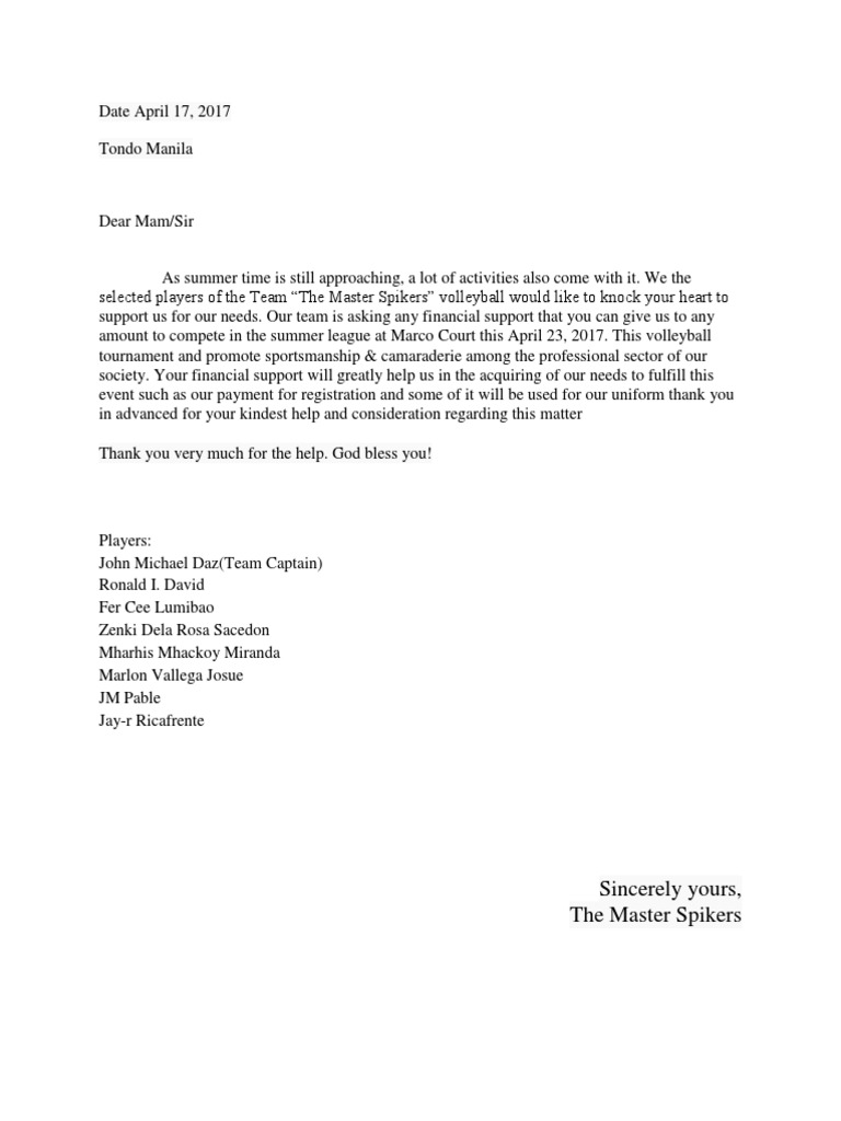 Solicitation Letter Sample For Basketball Team