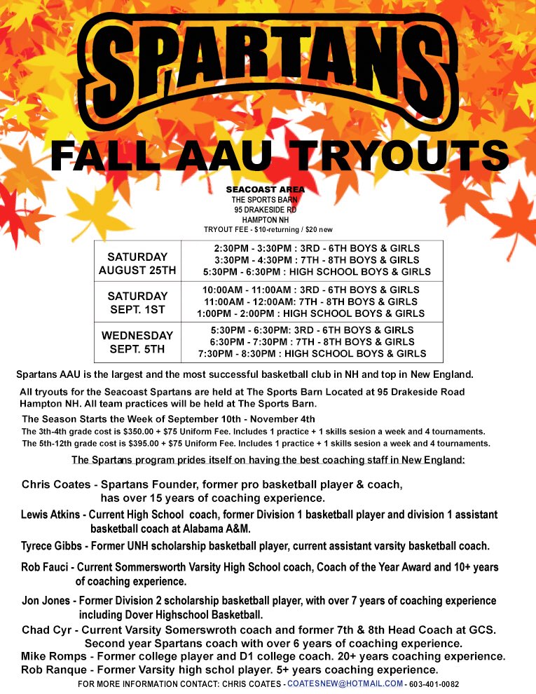2019 Seacoast Spartans Summer Basketball Camp Nh Spartans