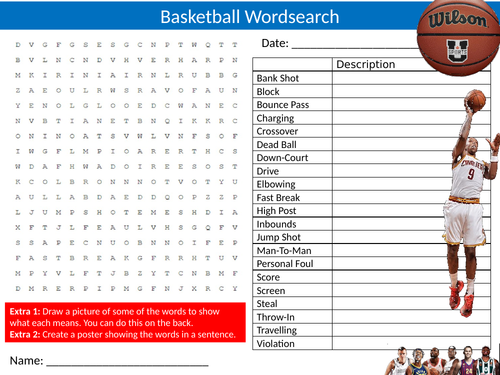 Basketball Wordsearch Vocabulary Crossword And More